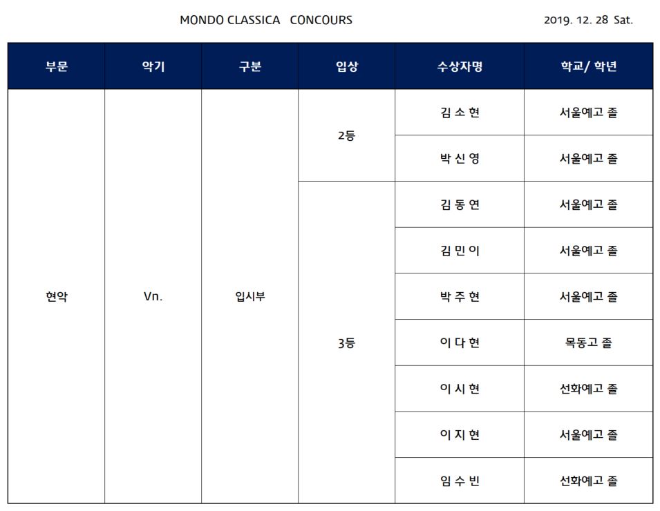 2019년 12월 28일 (토) 입상자 발표